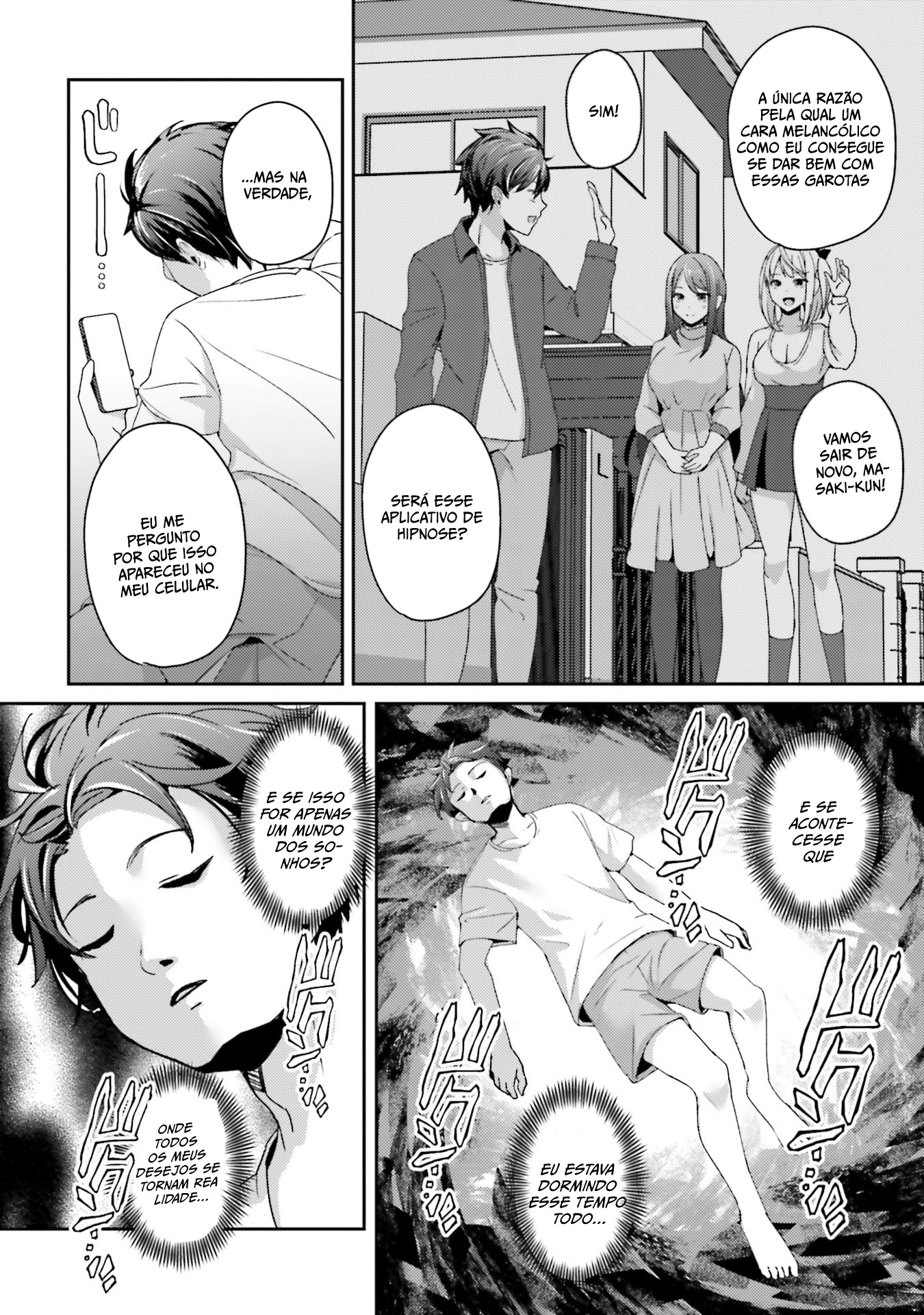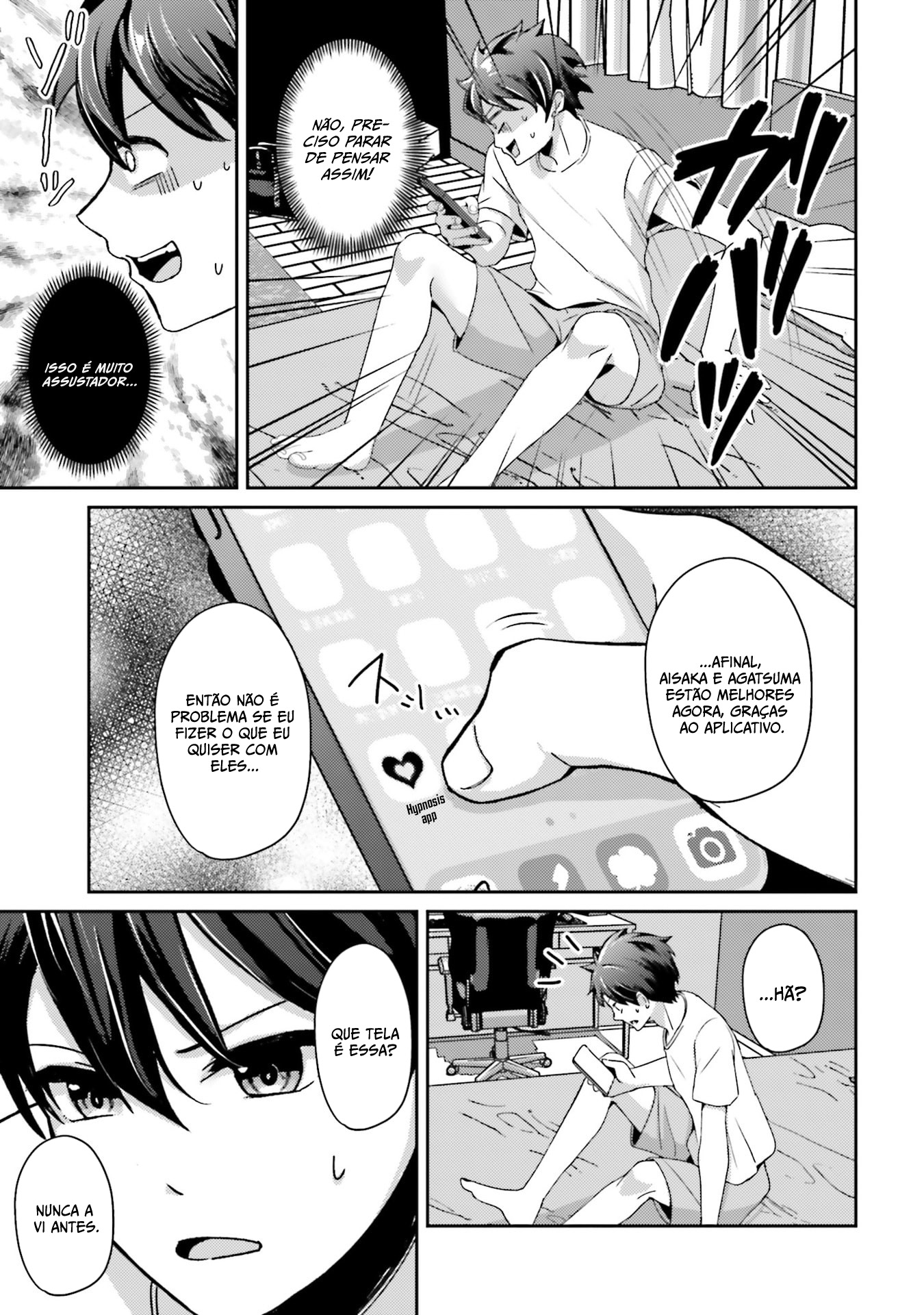Nunca tive uma namorada. O aplicativo instalado no meu celular era um app de hipnose que podia controlar qualquer pessoa. Depois de testá-lo, o poder do app era real. Com isso, uma vida de harém não é apenas um sonho... "Por que todas as garotas que eu abordo têm problemas!?" Uma garota linda, uma moça simples com uma beleza escondida, uma jovem elegante e descolada — pelo poder do aplicativo de hipnose, seus segredos que elas não podiam contar a ninguém são revelados! (Eu só queria fazer coisas eróticas...!) O protagonista, que se autoproclama um perdedor, mas no fundo é um bom sujeito, acaba ajudando as pessoas!?