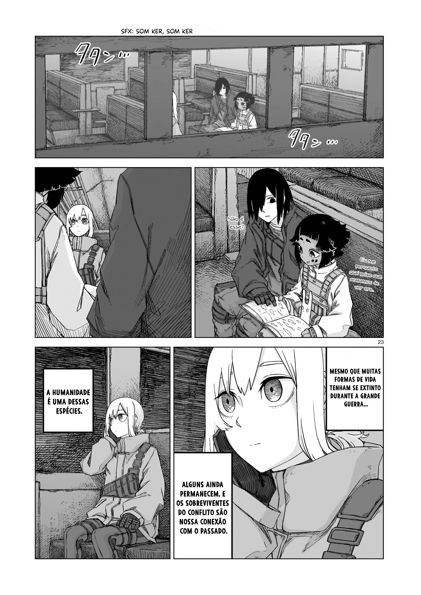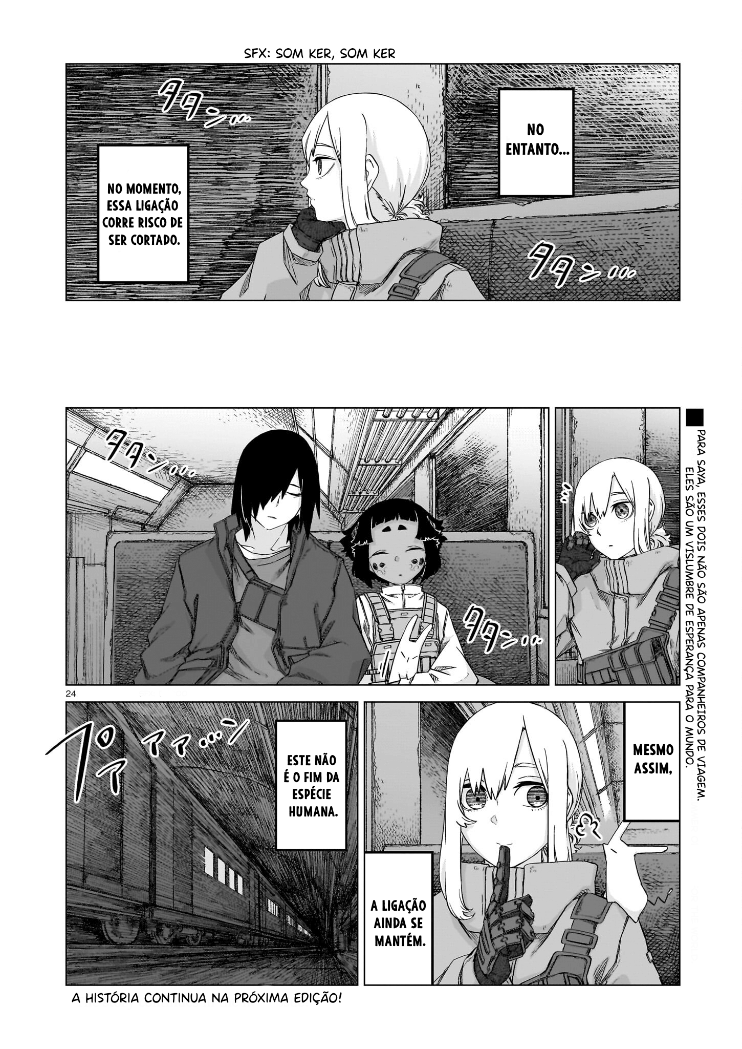 A girl walks alone in a world without humans. Her mission is to search for survivors and cleanse the land. Will humans be found? A story of loneliness and beautiful ruins. ___ **Additional Links:** - Alt Official Raw: [KADOCOMI](https://comic-walker.com/detail/KC_000736_S?episodeType=first)
