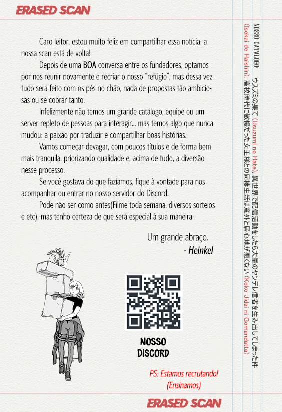Postado - 5 horas atrás Boa leitura do mangá Usuzumi no Hate – Capítulo 29 , Não se esqueça de curtir e compartilhar. O Mangá Usuzumi no Hate é sempre atualizado no Pizzaria Scan. Não deixe de conferir também outras atualizações de mangá. A lista completa de mangás do Pizzaria Scan está no menu..
