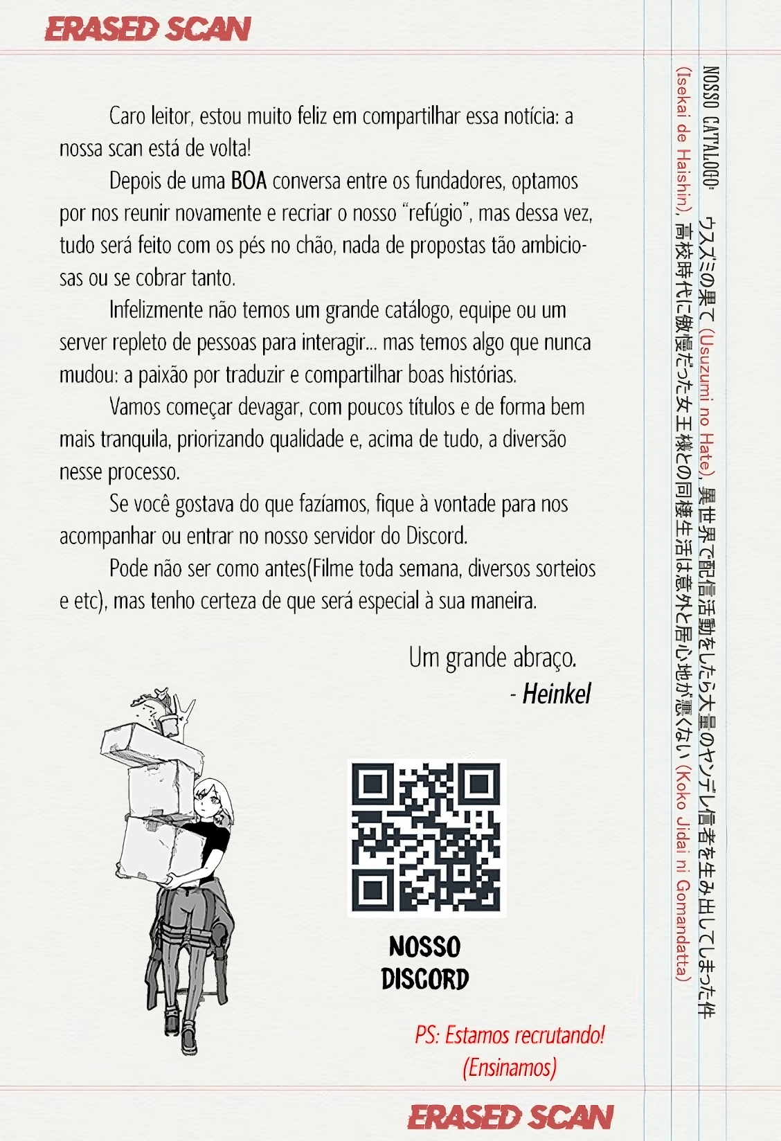 Postado - 5 horas atrás Boa leitura do mangá Usuzumi no Hate – Capítulo 30 , Não se esqueça de curtir e compartilhar. O Mangá Usuzumi no Hate é sempre atualizado no Pizzaria Scan. Não deixe de conferir também outras atualizações de mangá. A lista completa de mangás do Pizzaria Scan está no menu..