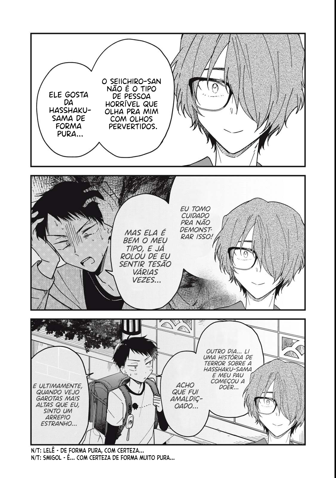 Yachiru is a hasshakusama youkai living in the human world. Because the prevailing public image of hasshakusama is that they're lewd, her powers have weakened and her height has shrunk from its original 8 shaku (240 cm) to about 190 cm. She strives to correct that impression, but each day is another failure. However, while at the cinema to study horror films, she meets Seiichirou, a young man who is a huge fan of hasshakusama. That's when Yachiru realizes that whenever Seiichirou praises her, her height returns to its original size...!!!
