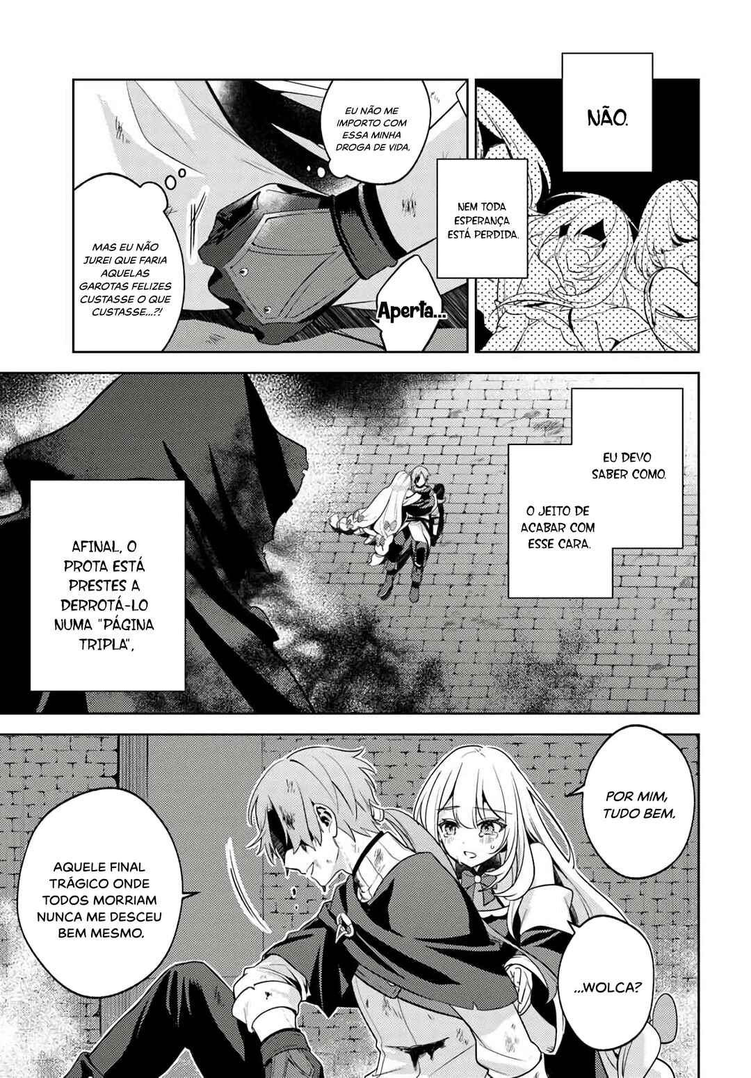 Hating bad endings more than anything else, Wolka refuses to accept that fate. Driven by sheer desperation, he fights with everything he has and, against all odds, miraculously defeats the monster. Though he loses one eye and one leg in the process, Wolka feels relieved for having overturned the “party annihilation” ending that was supposed to await him.